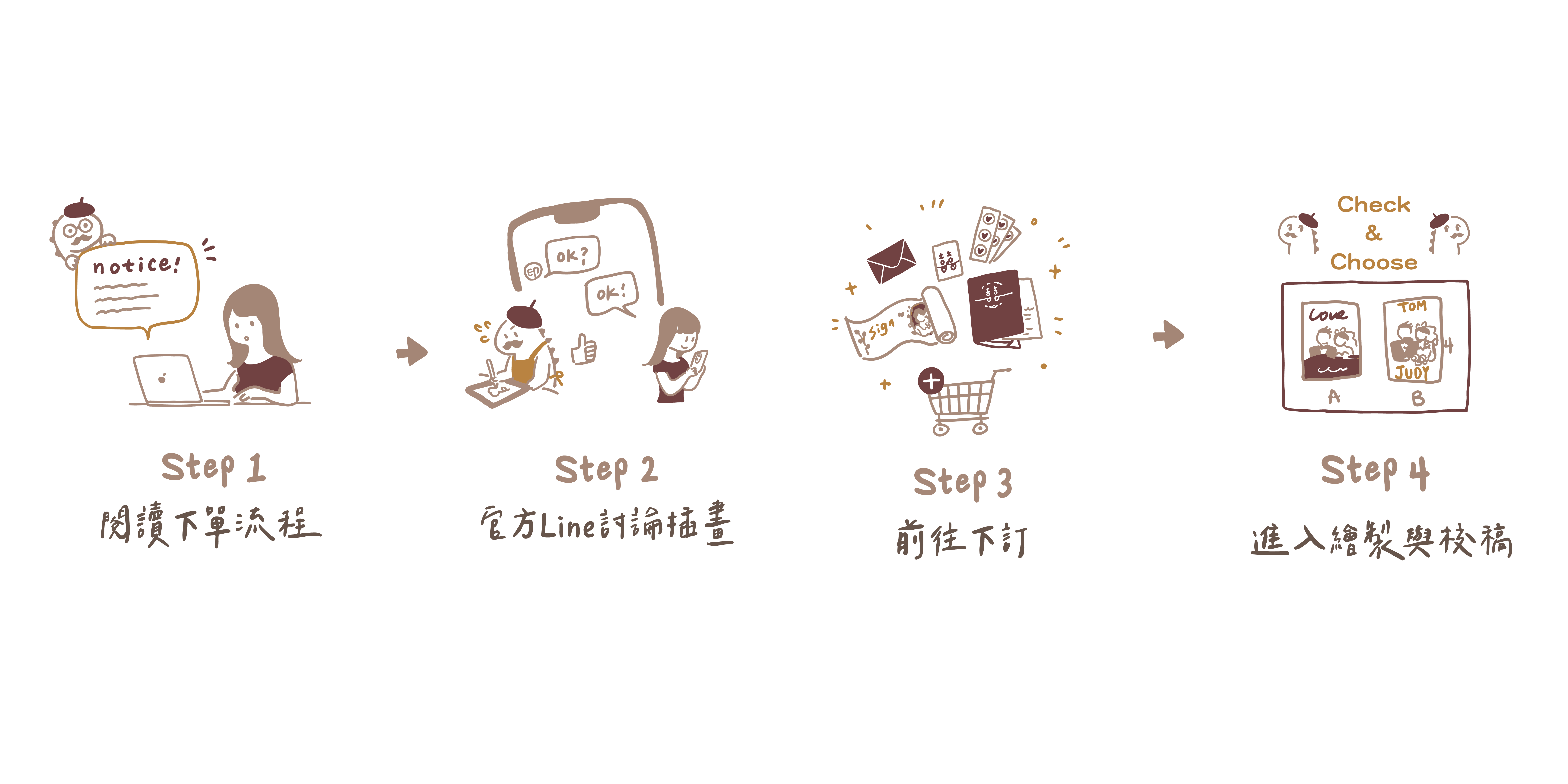 1.下單前請確認我們的「插畫風格」,喜帖為客製商品,無法取消訂單。